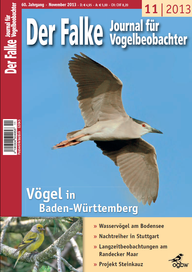 Die kürzlich erschienene Novemberausgabe des Magazins „Der FALKE“ widmet sich schwerpunktmäßig der Avifaunistik in Baden-Württemberg. Zahlreiche Vogelkundler aus den verschiedenen Ecken des Landes beleuchten praktische Vogelschutzmaßnahmen oder aktuelle Entwicklungen bei Neubürgern ebenso wie die Organisation und Ergebnisse langfristiger Monitoringprojekte oder die Tätigkeiten der Vogelwarte Radolfzell. Ein spannender Querschnitt durch die Vogelkunde-Szene Südwest-Deutschlands also, den Sie sich nicht entgehen lassen sollten.