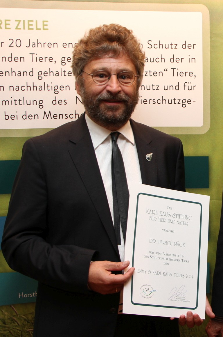 Im Rahmen einer feierlichen Preisverleihung wurde am 5. November Dr. Ulrich Mäck von der Karl-Kaus-Stiftung für seinen Einsatz im Vogelschutz ausgezeichnet. Den mit 5.000 Euro dotierten Stiftungspreis erhielt der ehemalige OGBW-Vorsitzende und aktive Regionalkoordinator für das Donaumoos für seinen jahrzehntelangen Einsatz insbesondere gegen die Verfolgung der Rabenvögel.
